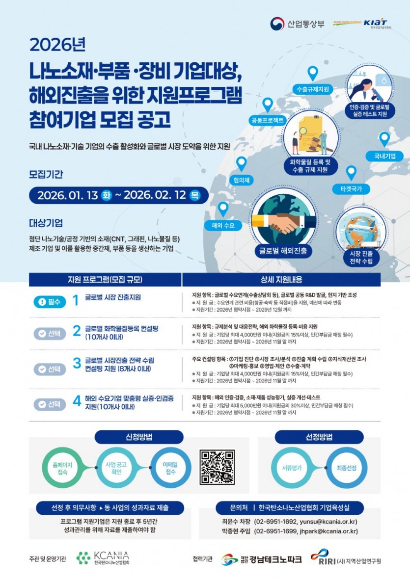 2026년 나노소재 · 부품 · 장비 기업 대상, 해외 진출을 위한 지원 프로그램 참여기업 모집공고